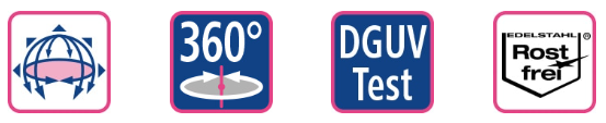 Tested and approved according to international fall protection standards, the PSA-INOX-STAR provides a reliable connection point for personal safety harnesses and lanyards. The polished stainless steel finish prevents dirt buildup and supports easy cleaning—perfect for workplaces with high safety and cleanliness requirements.